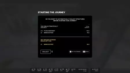 Также при подготовке к перемещению базы можно попытаться забрать построенные объекты, такие как опоры и шахтёрские аванпосты. Однако вместимость склада ограничена, и не всё удастся сохранить. В таком случае придётся выбирать: либо строить дополнительные склады, чтобы вместить всё, либо оставить часть построек позади. Если вы решите оставить что-то, затраченные на это ресурсы будут потеряны, и при необходимости придётся возводить эти объекты заново через мастерскую.